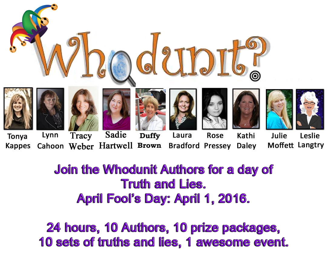 Today is April Fools Day and the Whodunit gang is celebrating with an awesome group event that will challenge you to figure out which statements are a lie and which are truth. How well do you know the authors you follow? Head over to the event and comment with your best guess. The prizes are awesome and the truth may surprise you.