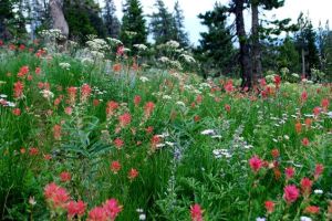 The nice thing about living in the mountains is that you don’t really have to go anywhere to experience the summer color. The meadows at lake level tend to bloom in early summer while the meadows in the higher elevations bloom late in the season, but if the winter was heavy and the spring wet, there are plenty of flowers to be found right up until the leaves change color in the fall.